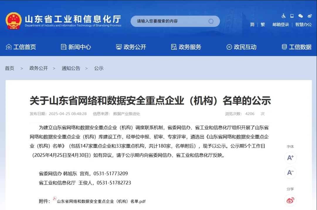 近日,在省委網(wǎng)信辦、省工業(yè)和信息化廳聯(lián)合開展的山東省網(wǎng)絡(luò)和數(shù)據(jù)安全重點(diǎn)企業(yè)(機(jī)構(gòu))庫(kù)建設(shè)工